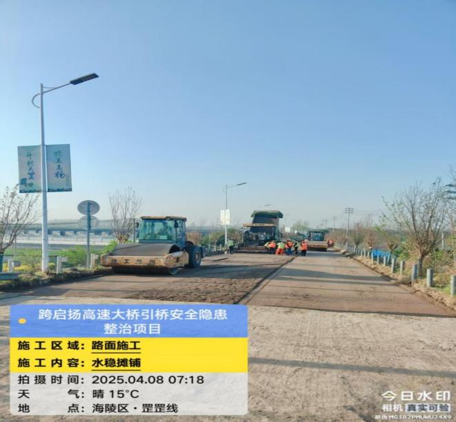 跨启扬高速大桥引桥安全隐患整治项目位于泰州市海陵区罡罡线及江州北路跨越启扬高速的路段,施工路段全长0.3公里,混合车道宽度为9米。
