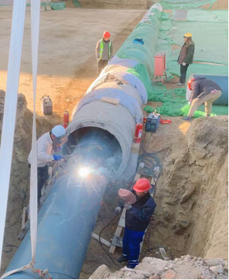 2025年12月,工程项目稳步推进,工作重点集中在春兰路、站东路及泰顺路的管线与基础工程施工。在春兰路工区,污水管道的钢管焊接、安装及沟槽砂回填工作已全面完成,焊缝经百分百检测且电火花试验合格,防腐层处理符合标准要求。站东路工区施工进展顺利,泡沫轻质土施工按计划完成,为后续水稳层摊铺奠定了良好基础。