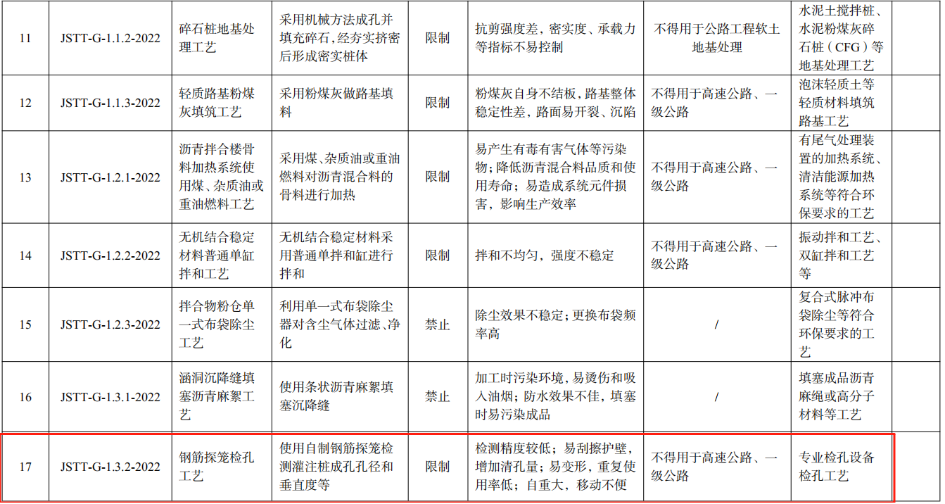 江苏省公路水运工程落后工艺淘汰目录清单(第二批)