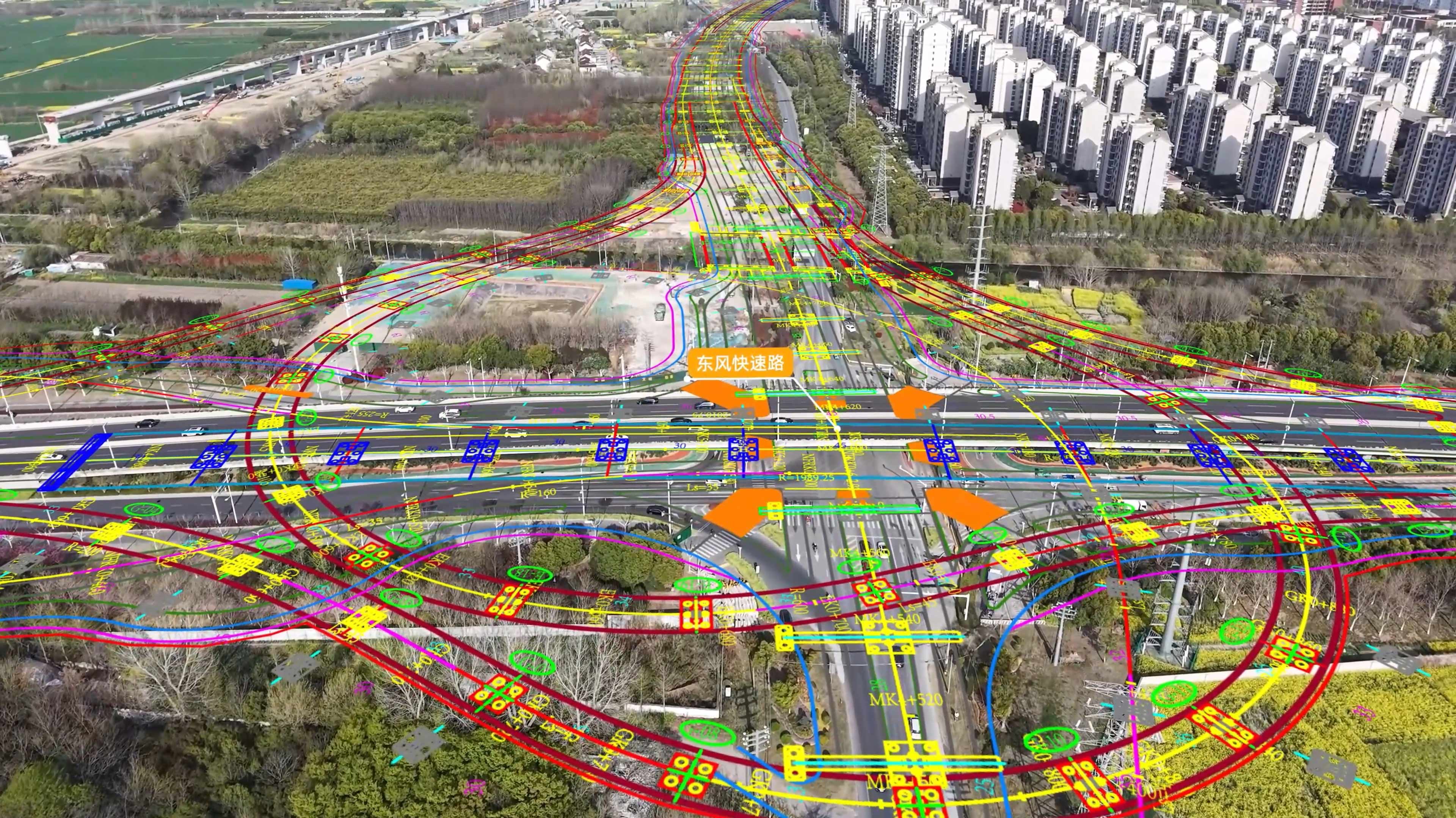以往航拍视频不能直观的看到项目总体平面走向,本次我们采用了在原有航拍视频基础上叠加CAD平面图,采用该技术后通过视频播放就能直观的看到工程平面布置、障碍物位置、桩位布置、红线范围等重要信息,能够更加有效的指导现场施工组织和资源配置,也便于甲方和主管单位更加直观的看到障碍物迁移情况,有利于项目总体推进。